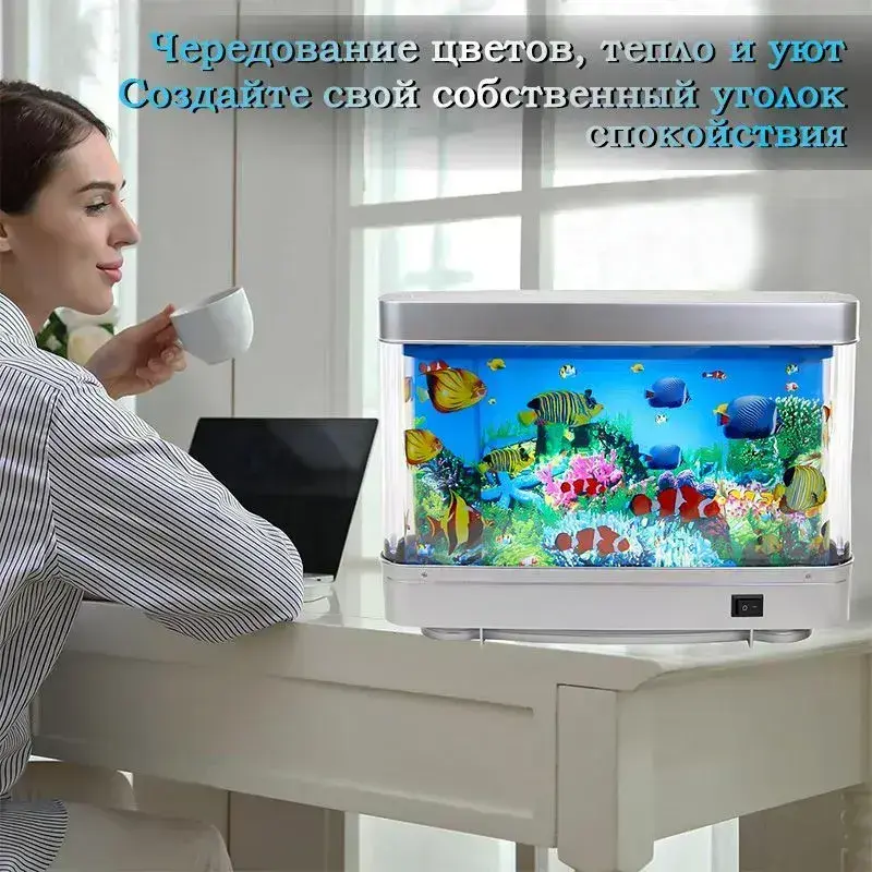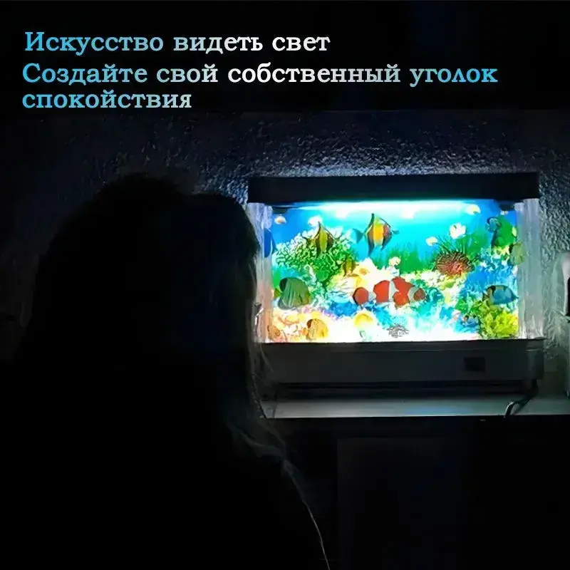 Светильник-ночник "Аквариум" с движущимися рыбками для детей и взрослых, оптимальный размер
