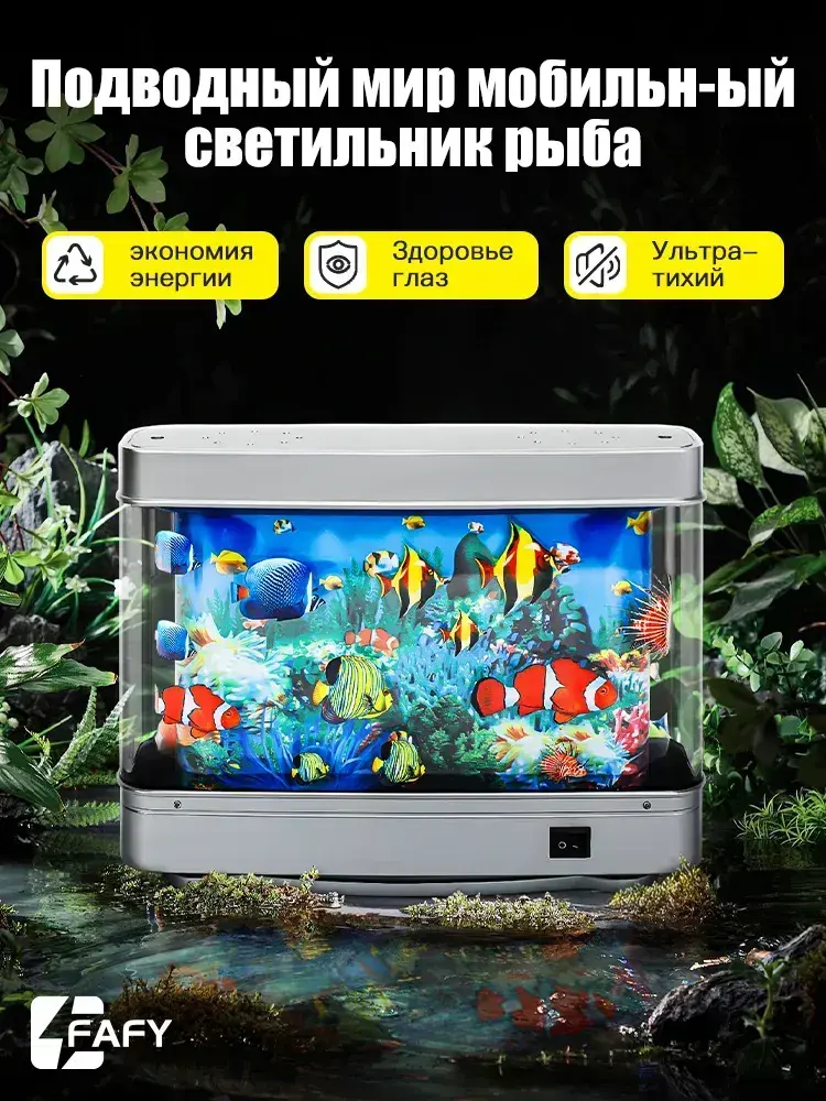 Светильник-ночник Аквариум с движущимися рыбками размер 30см