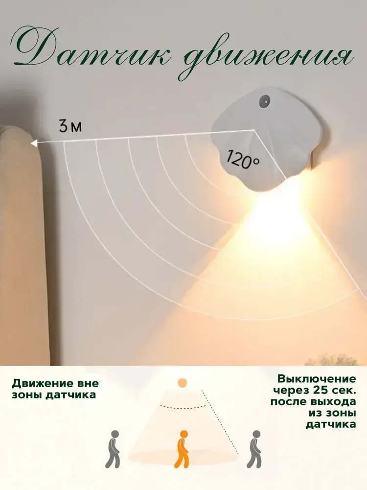 Светильник Ночник настенный аккумуляторный с датчиком движения