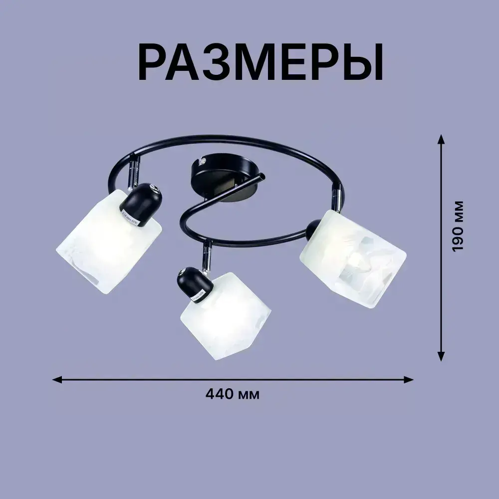 Светильник потолочный, спот РОССВЕТ РС21344 BK+CR/3C, 3*E14 60 Вт