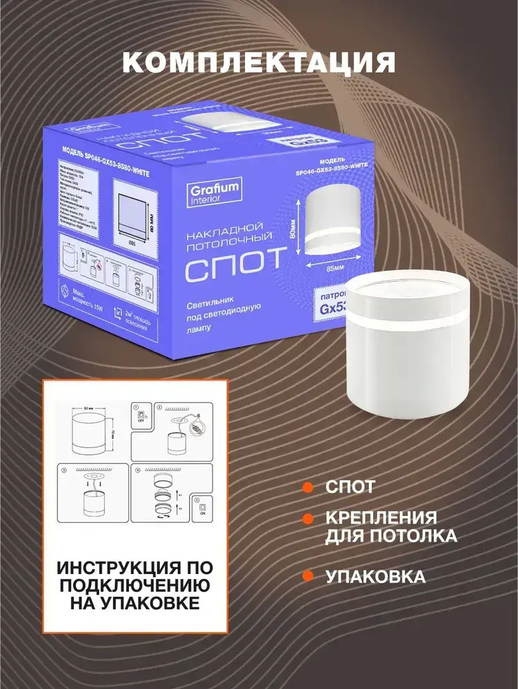 Светильник потолочный / спот светодиодный белый GX53, накладной точечный Grafium Interior