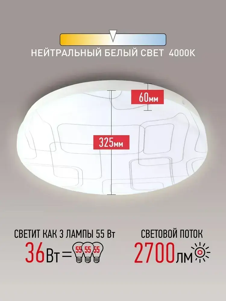 Светильник потолочный светодиодный ЭРА Slim 2 SPB-6-36-4K 36 Вт, 4000K, без пульта ДУ