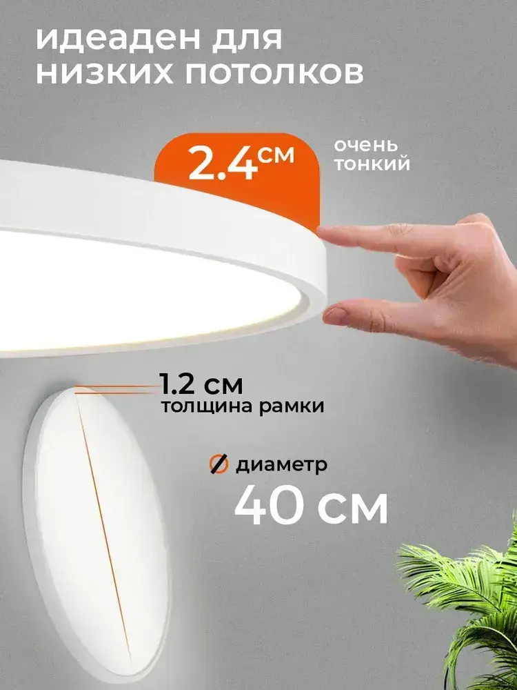 Светильник потолочный светодиодный Maghome 3000K/4000K/6500K, 36Вт, 40cm, 2.4cm толщиной ,белый
