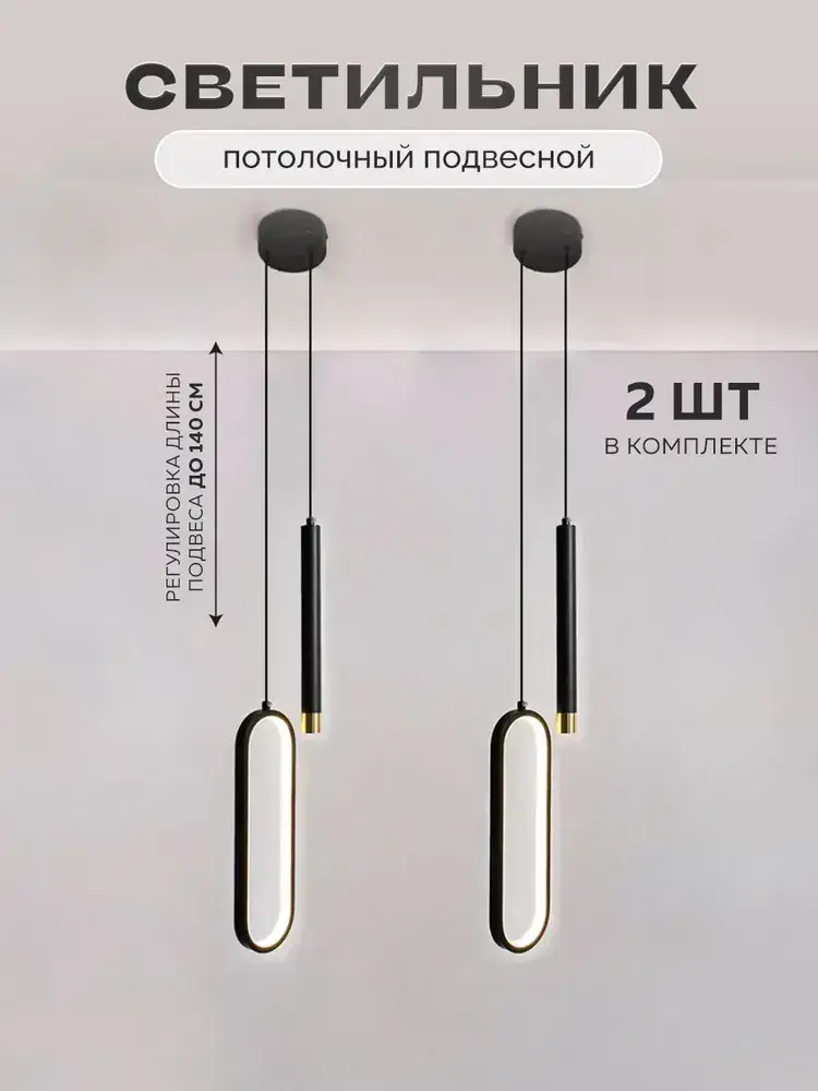 Светильник потолочный светодиодный, OutFrame, 2шт, 14Вт, люстра в стиле лофт, 3000К, теплый, черный