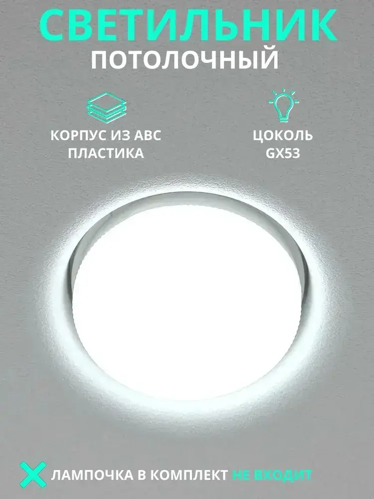 Светильник потолочный светодиодный встраиваемый GХ53 белый точечный спот круглый безрамочный