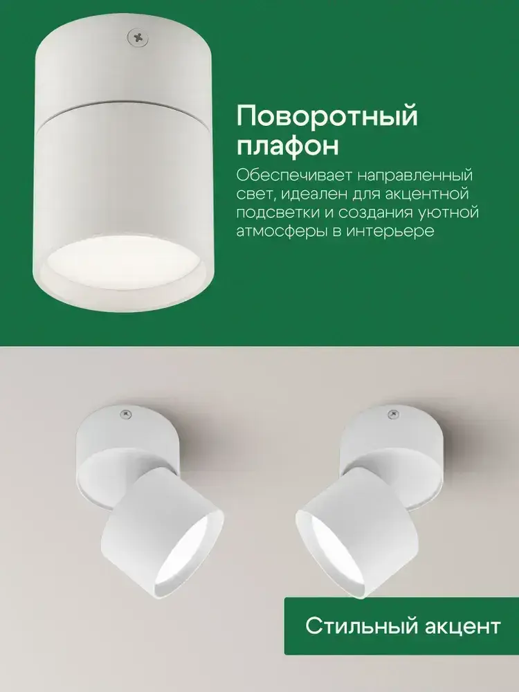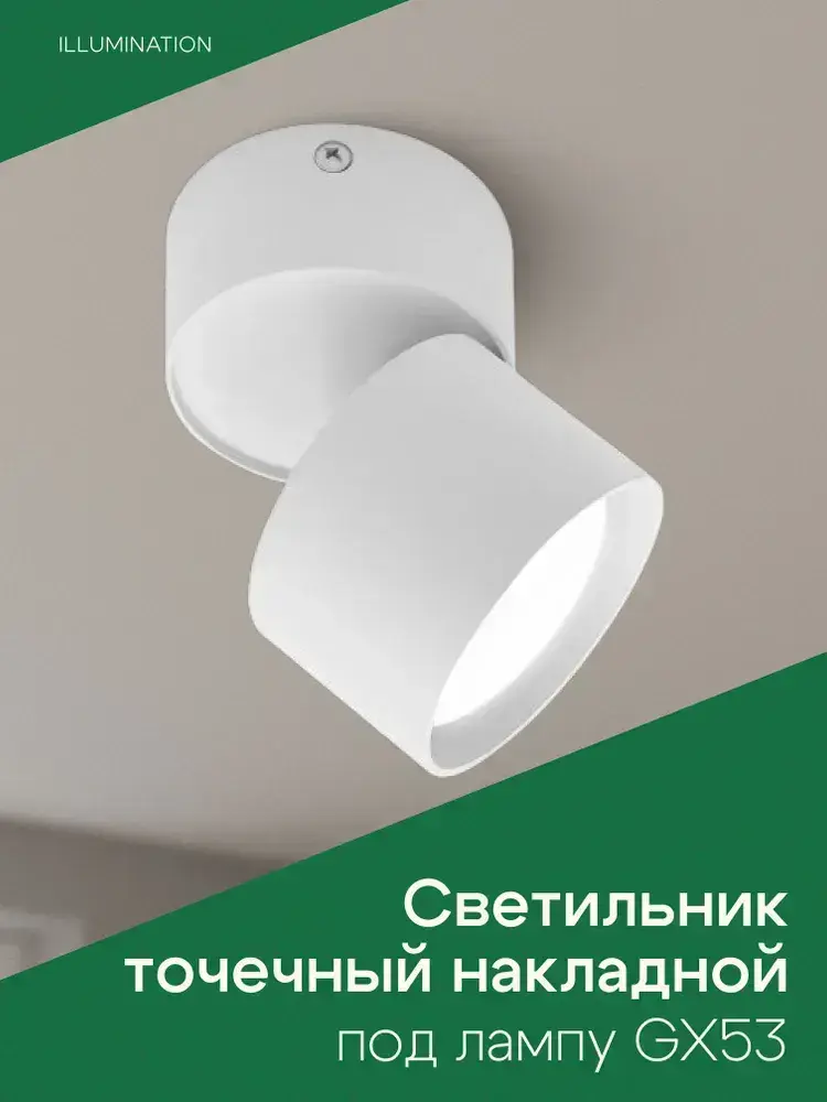 Светильник потолочный точечный накладной цилиндр спот поворотный белый под лампу GX53