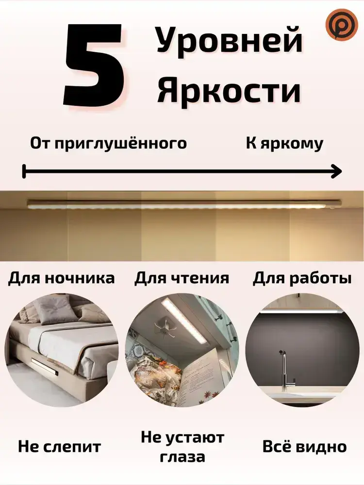Светильник с датчиком движения 30 см, беспроводная лампа, LED подсветка на кухню в шкаф, датчик света и регулируемая температура свечения, на аккумуляторе