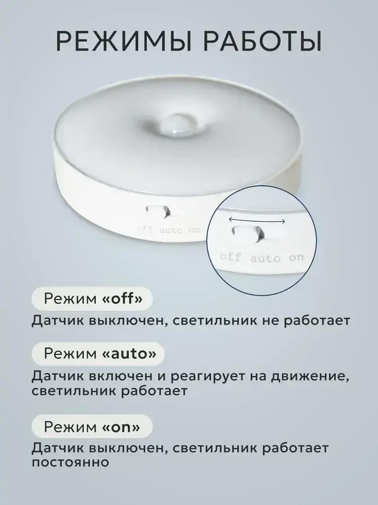 Светильник с датчиком движения, 3режима работы, беспроводной, аккумуляторный, комплект 3шт.