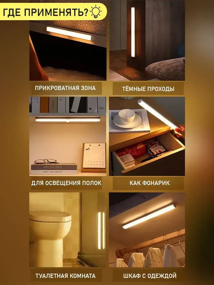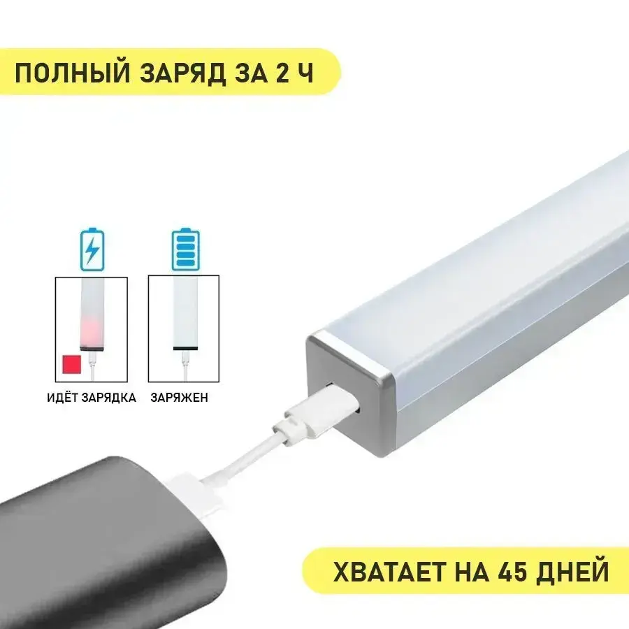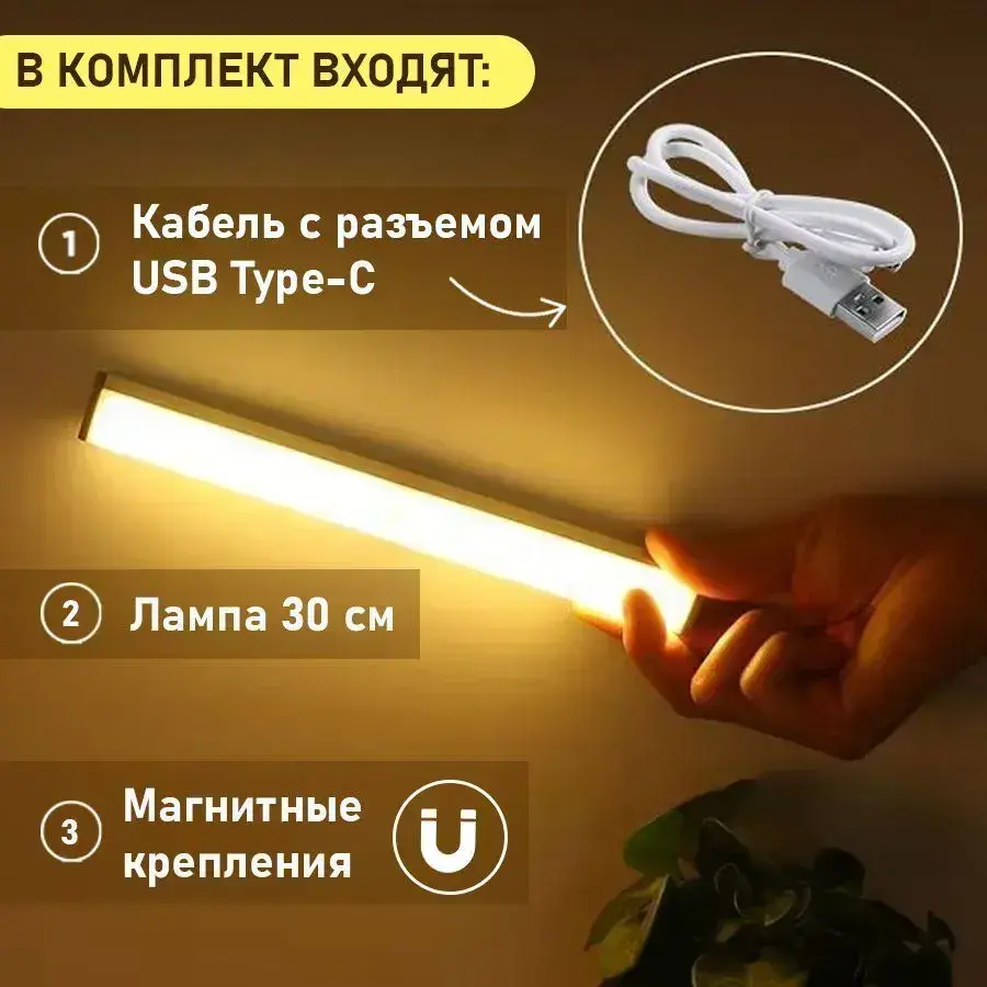 Светильник с датчиком движения, беспроводной светодиодный ночник, перезаряжаемый USB-ночник, 30 см
