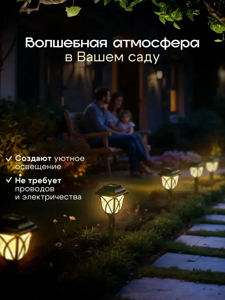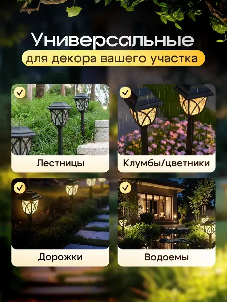 Светильник садовый на солнечной батарее уличный / фонарики садовые под старину /теплый свет