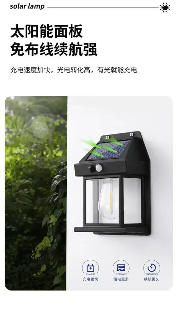 светильник садовый на солнечной батарее уличный настенный с датчиком движения