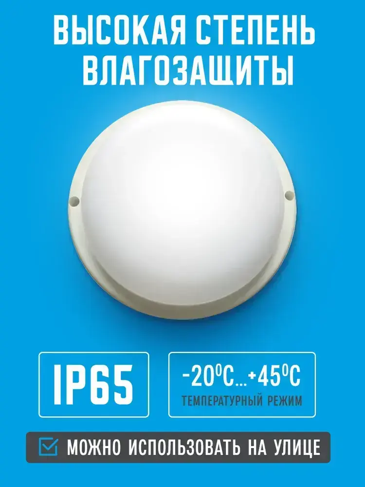 Светильник светодиодный 15Вт 6500К, герметичный IP65. С микроволновым сенсором.