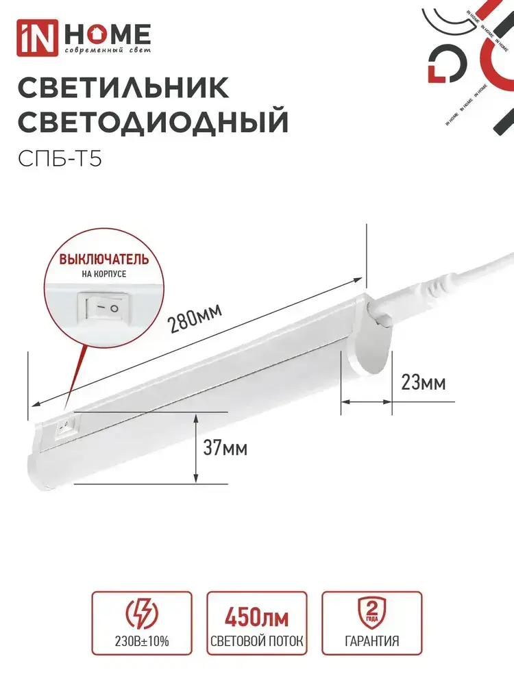 Светильник светодиодный 5Вт 6500К 450Лм 280мм СПБ-Т5 IN HOME
