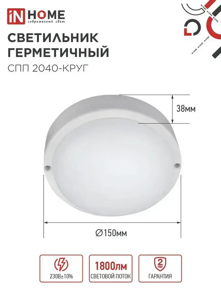 Светильник светодиодный герметичный СПП 2040-КРУГ 20Вт 4000К 1800Лм IP65 155мм IN HOME