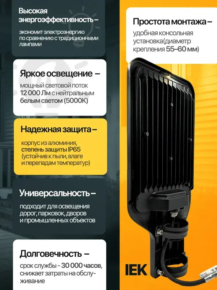 Светильник светодиодный консольный уличный 120 Вт IEK с КРОНШТЕЙНОМ