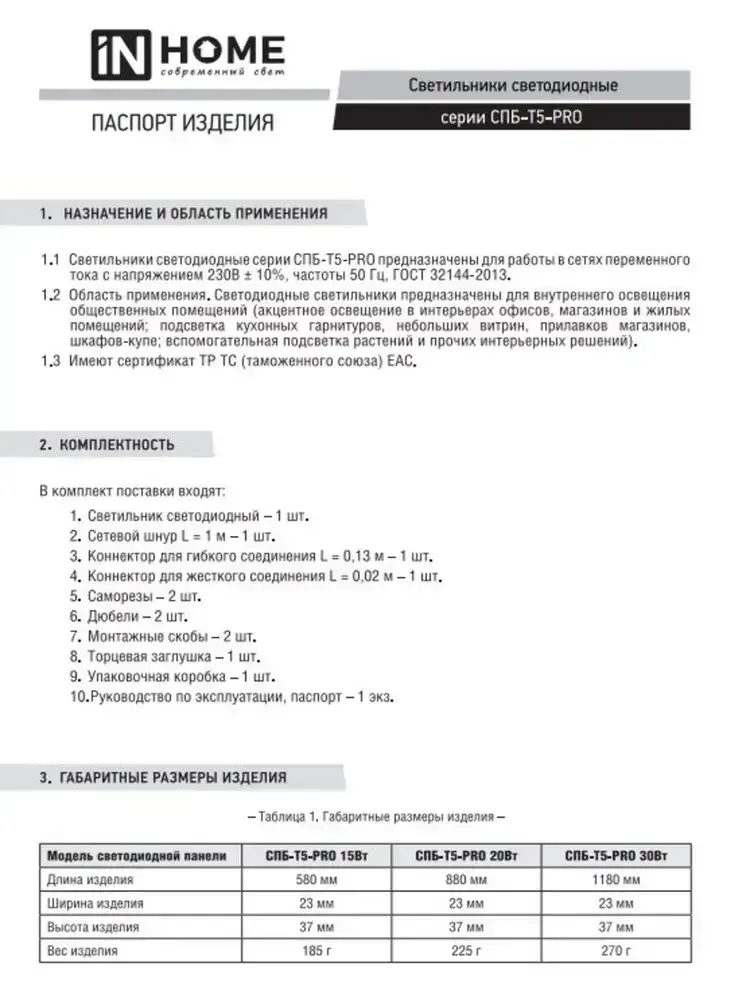 Светильник светодиодный линейный СПБ-Т5-PRO 30Вт 230B 6500К 3000Лм 1200мм