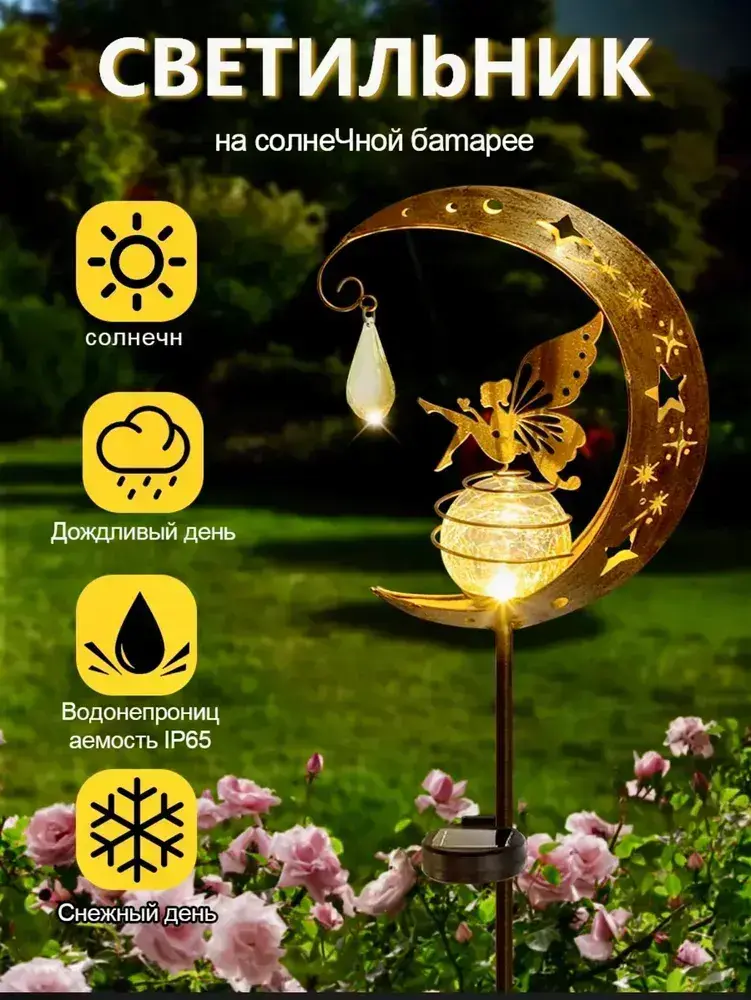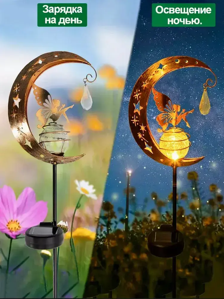 Светильник светящаяся луна на солнечной батарее с феей