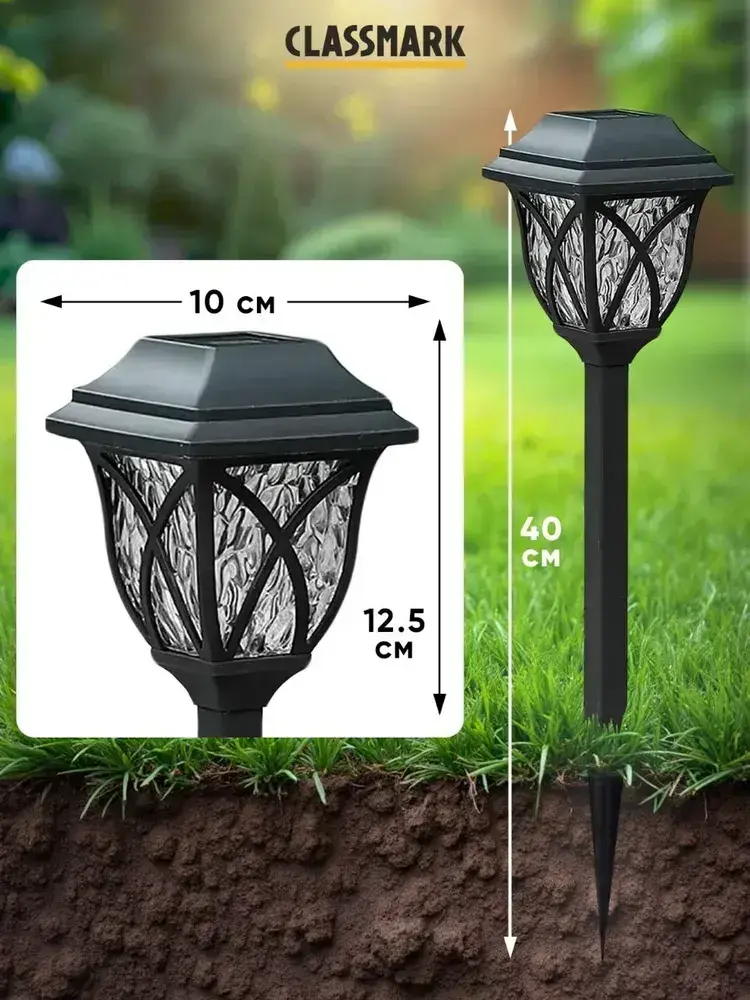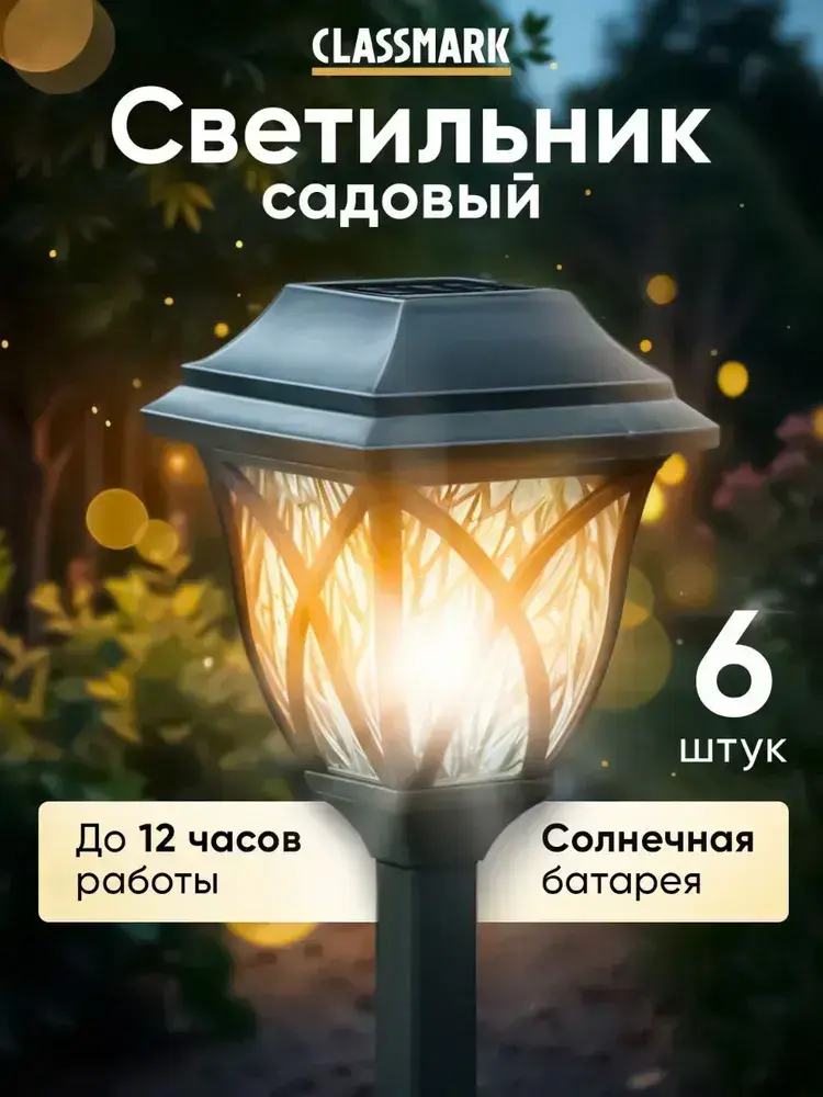 Светильник уличный 6 шт Classmark садовый фонарик, на солнечной батарее, напряжение 1.2 В, типоразмер элемента питания АА, черный