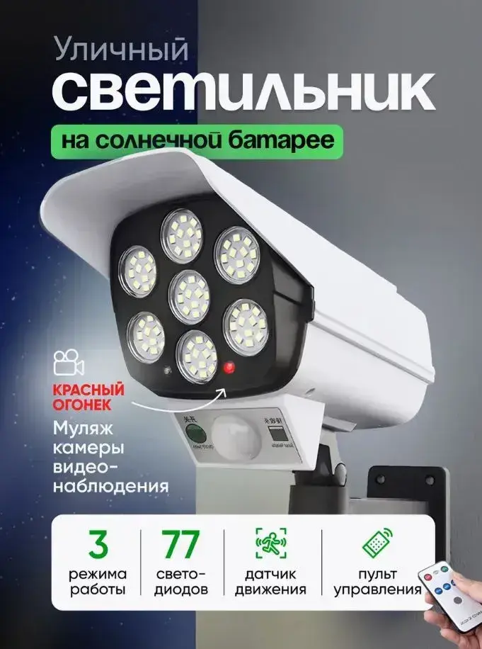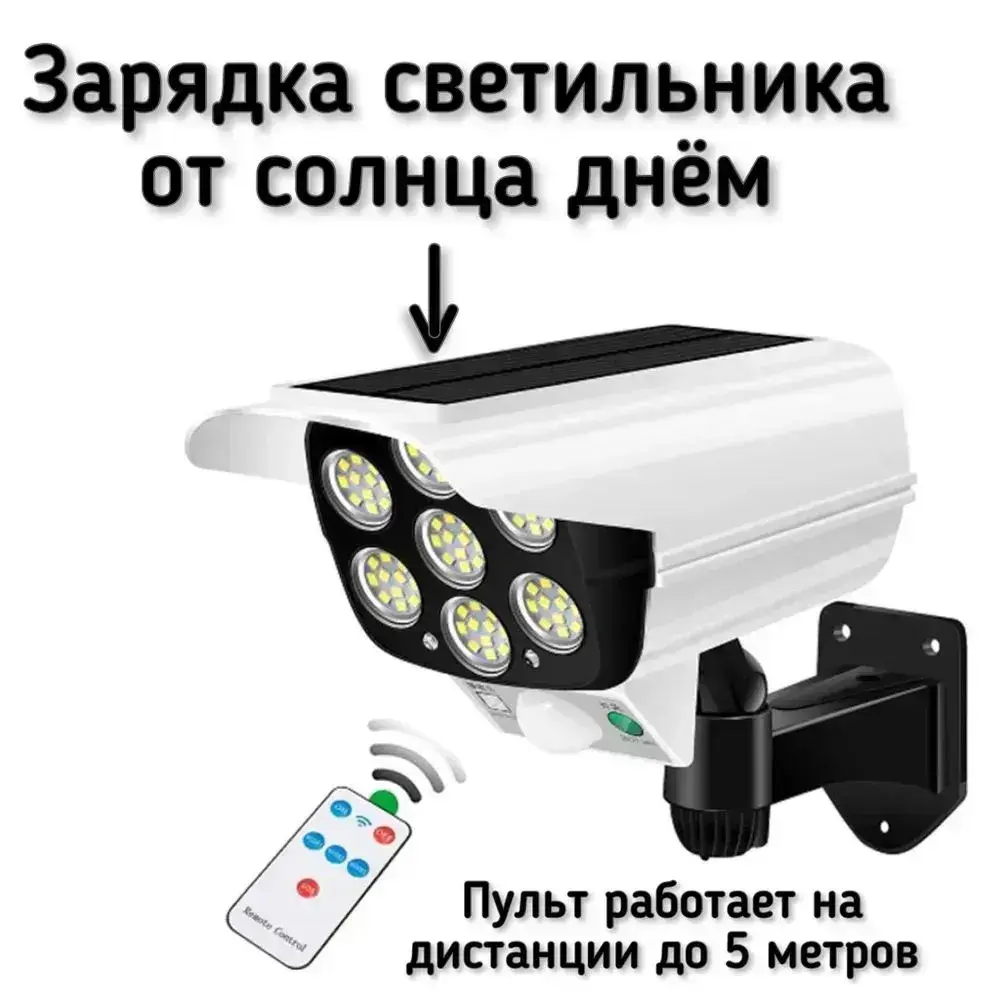 Светильник уличный беспроводной на солнечной батарее с датчиком движения муляж камеры с пультом