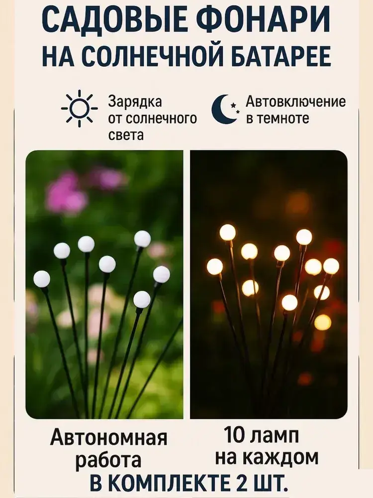 Светильник уличный на солнечной батарее 2 шт 10 ламп