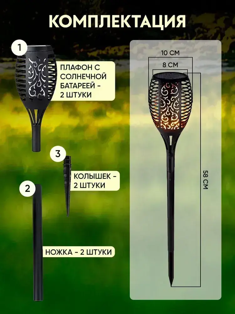 Светильник уличный на солнечной батарее/ уличный с эффектом пламени Факел