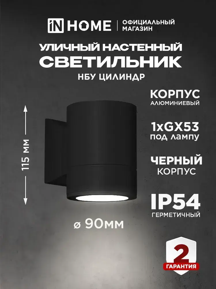 Светильник уличный настенный архитектурный фасадный односторонний НБУ ЦИЛИНДР-1xGX53-BL алюминиевый под лампу 1xGX53 230B черный IP65 IN HOME