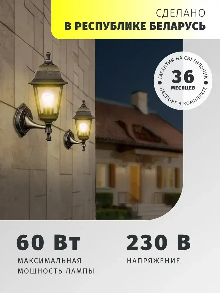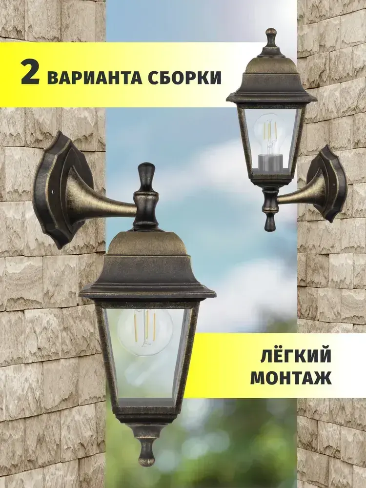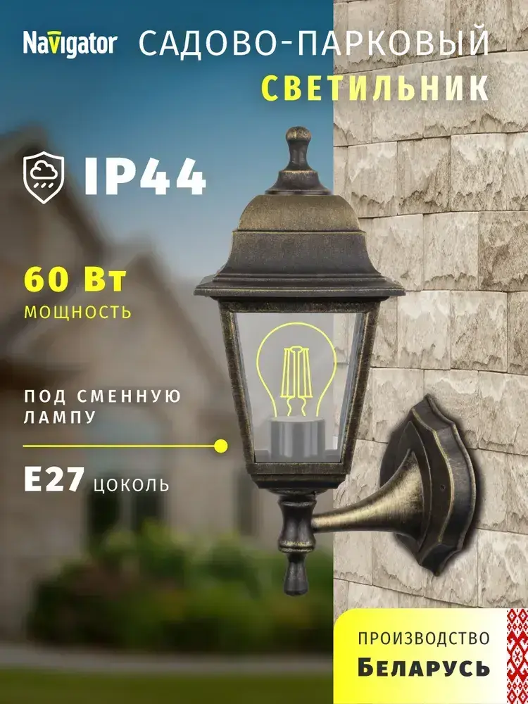Светильник уличный настенный Navigator 80 489, 4 грани, цоколь E27, IP44, черный под бронзу