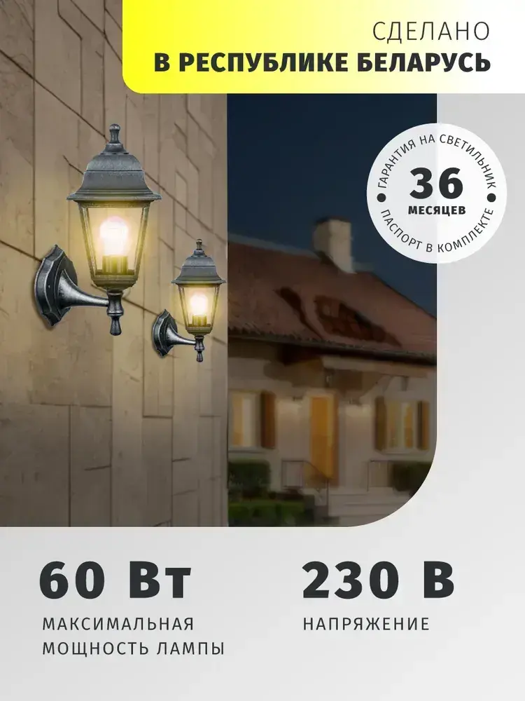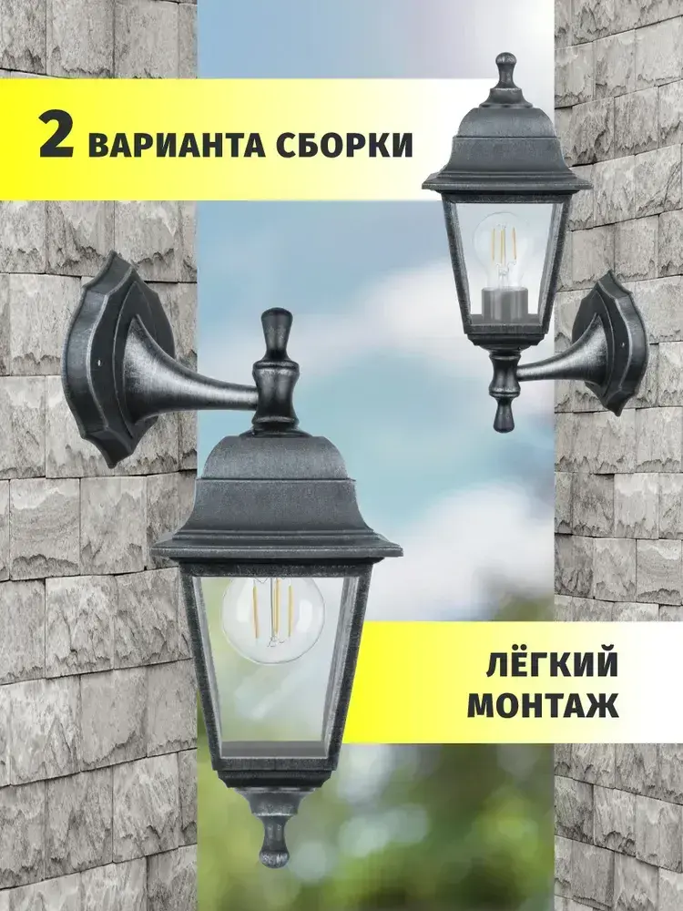 Светильник уличный настенный Navigator 80 491, 4 грани, цоколь E27, IP44, черный под серебро