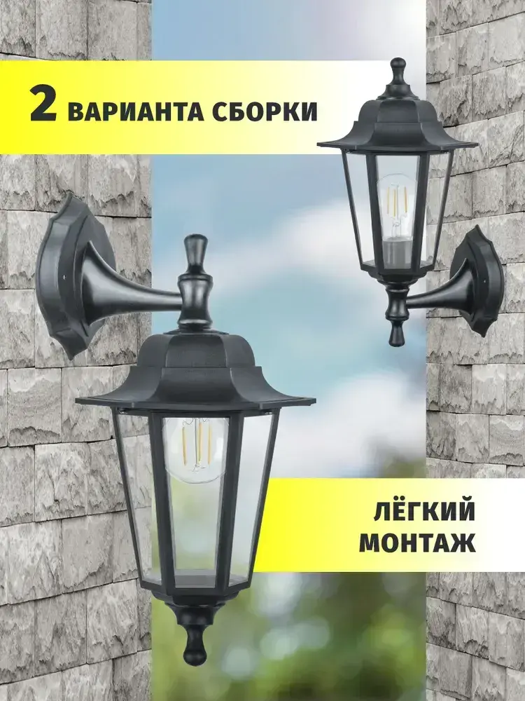 Светильник уличный настенный Navigator 80 493, 6 граней, цоколь E27, IP44, черный