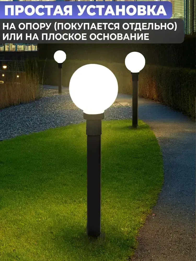 Светильник уличный НТУ садовый Шар белый. Фонарь на столб D200mm. Е27. IP54