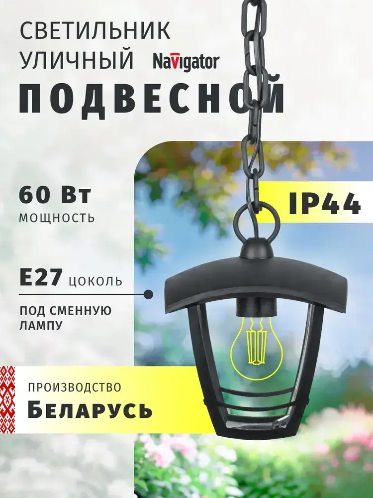 Светильник уличный потолочный Navigator 80 464, 4 грани, 60 Вт, цоколь Е27, черный
