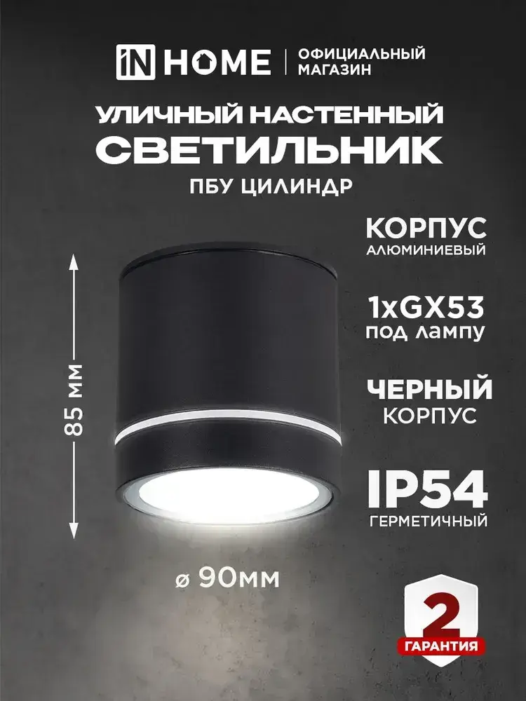 Светильник уличный потолочный ПБУ ЦИЛИНДР-1xGX53-NL-BL с подсветкой алюм черный IP54 IN HOME