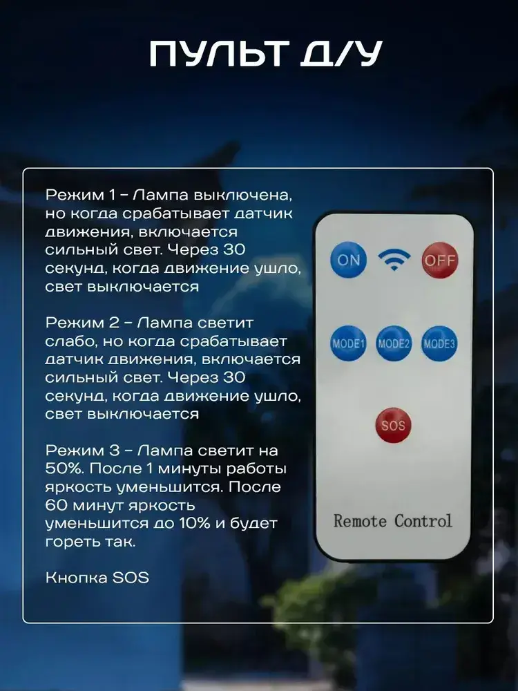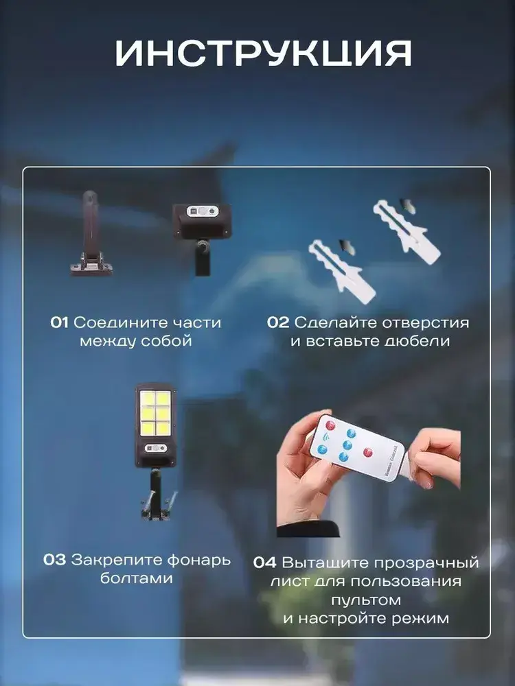 Светильник уличный с датчиком движения на солнечной батарее 1 шт