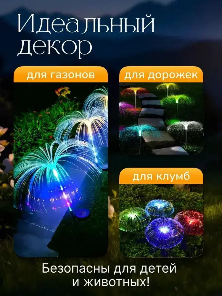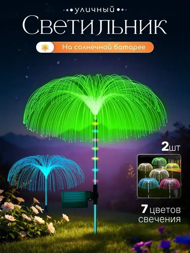 Светильник уличный садовый Фонтан 2шт/ садовые светильники на солнечных батареях-7 цветов