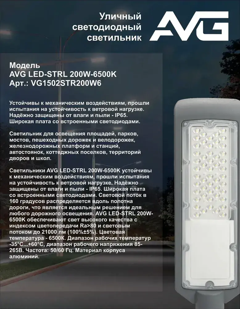 Светильник уличный светодиодный AVG LED-STRL 200Вт, 6500К