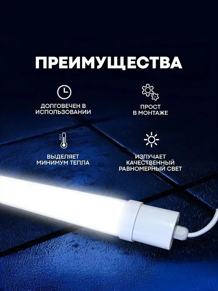 Светильник влагозащищенный линейный светодиодный уличный настенно -потолочный 1200мм 36W 6500К IP65 с EMS-фильтром