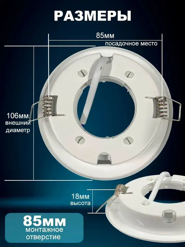 Светильник встраиваемый металл, цоколь GX53, белый, для натяжного и гипсокартонного потолка, комплект 10шт.