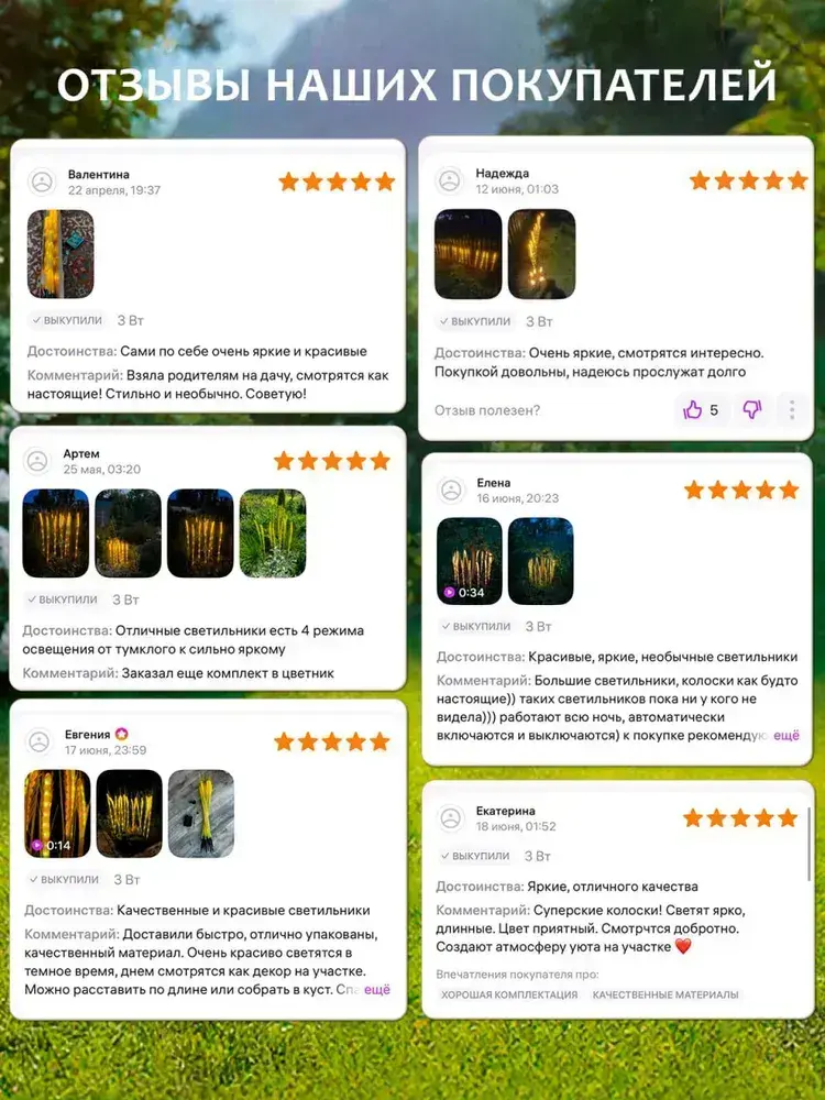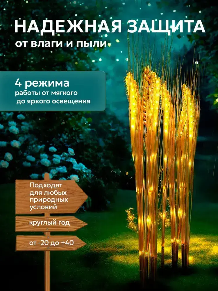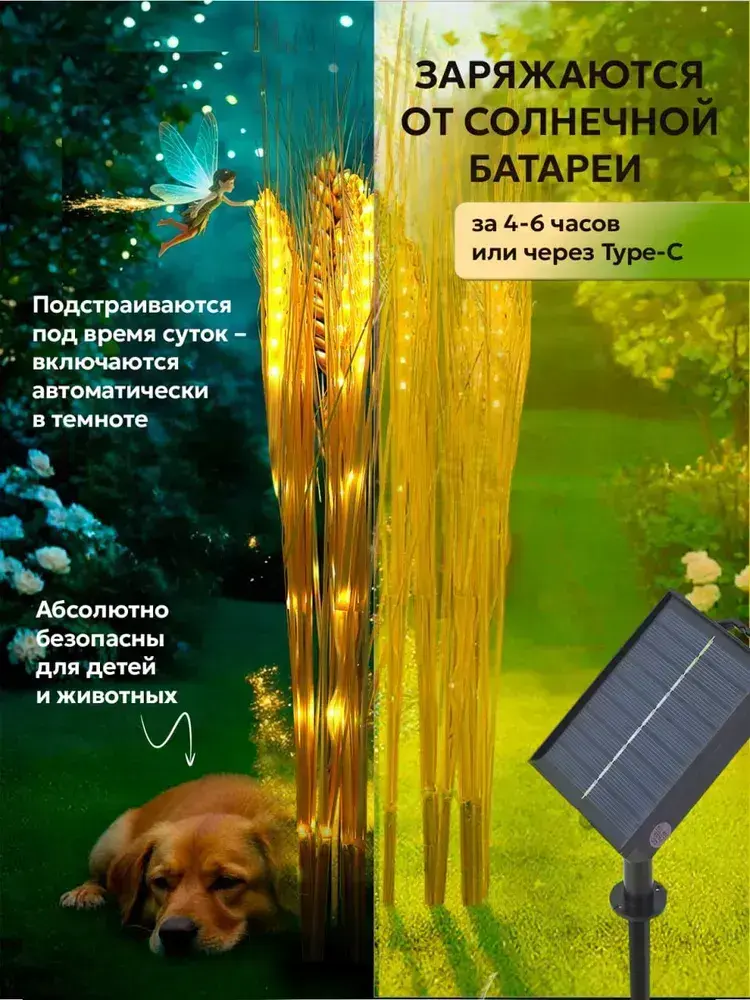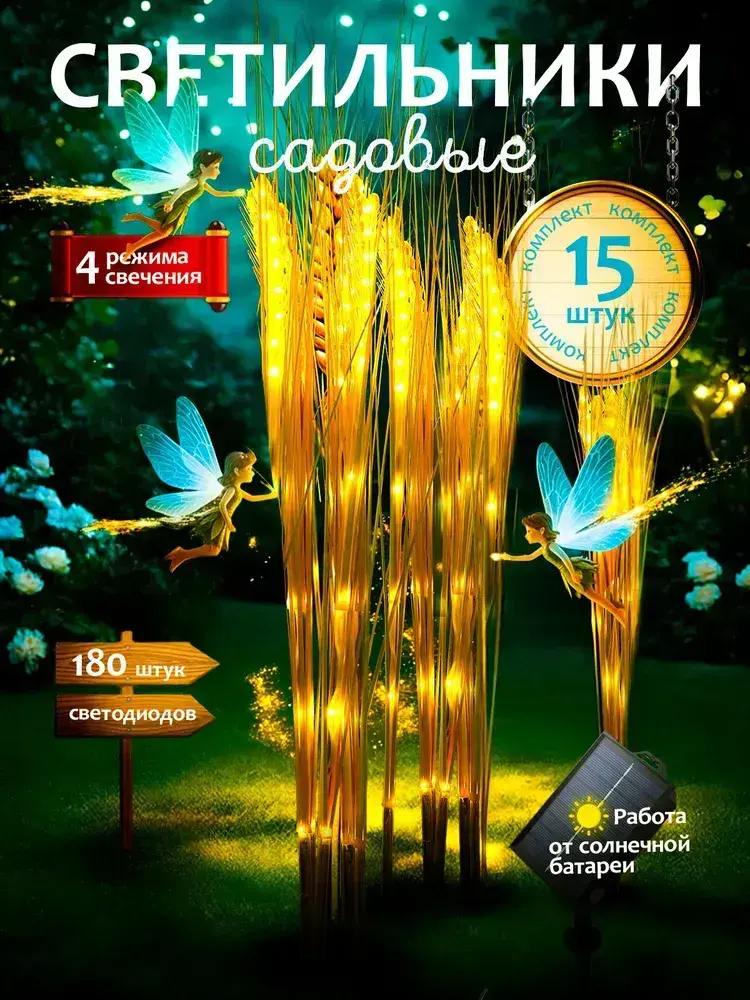 Светильники на солнечных батареях. Фонарики садовые на солнечных батареях, колоски 15 штук