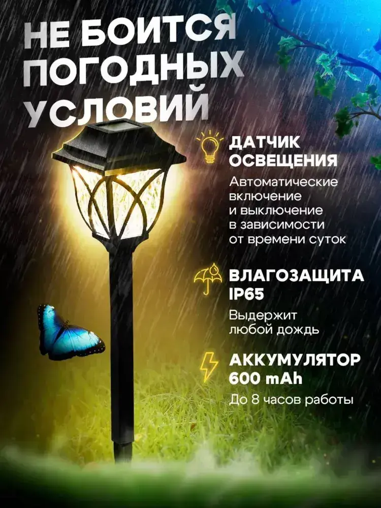 Светильники садовые на солнечных батареях уличные, 6 шт, теплый свет