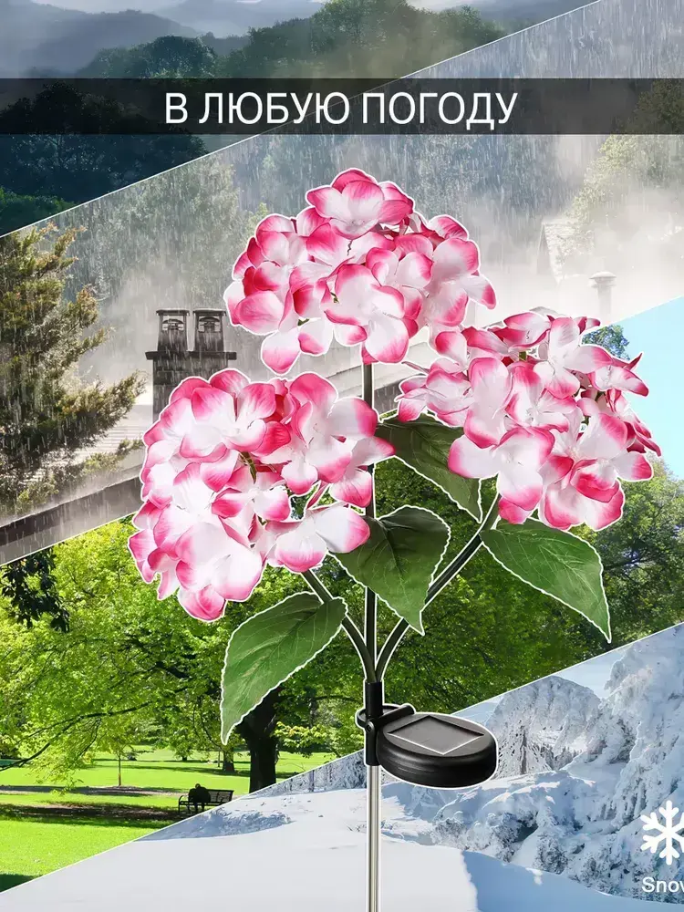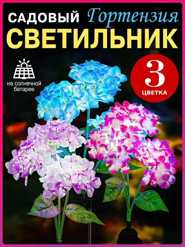Светильники уличные 3цвета на солнечной батарее "Гортензия" 3 бутона по 3 шт