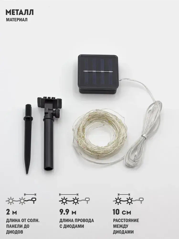 Светодиодная гирлянда садовая "Роса" на солнечной батарее, ARTSTYLE, CL-SS32M, 100 светодиодов, 9,9м, мультицвет.
