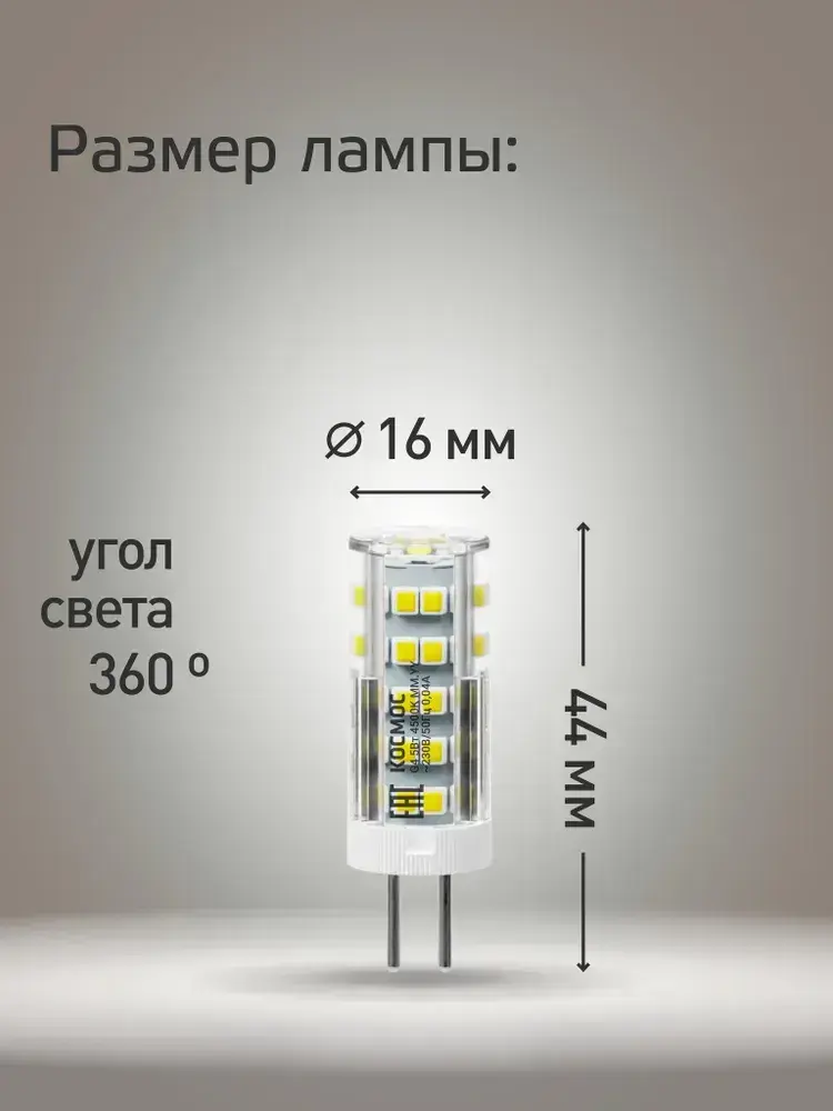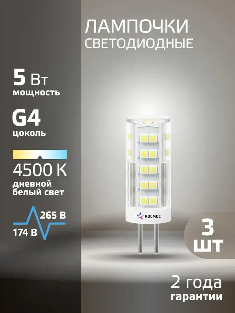 Светодиодная лампочка КОСМОС 5Вт G4 220В, 3шт в упаковке, нейтральный белый свет