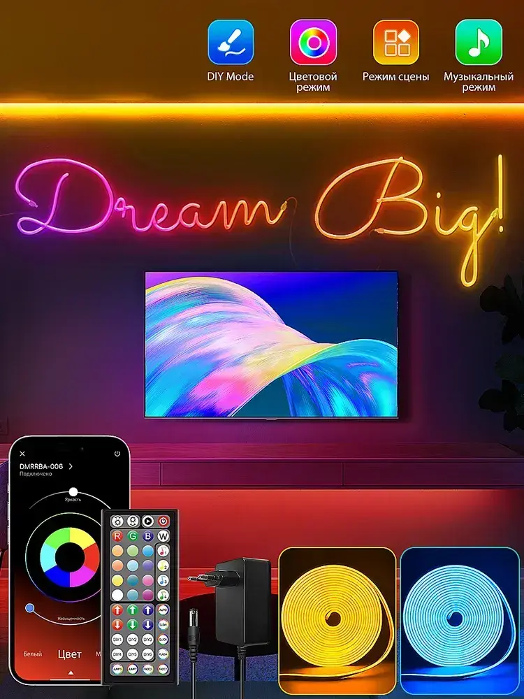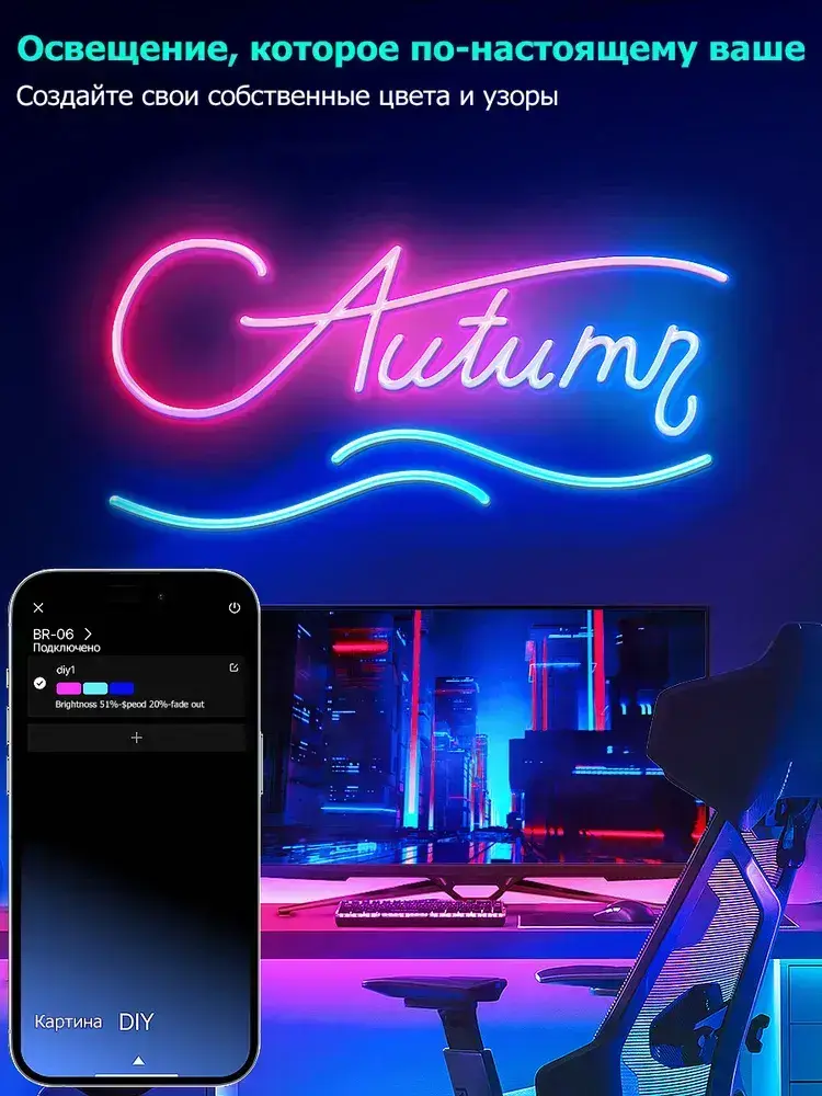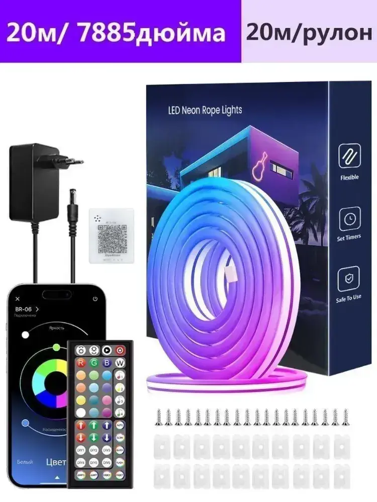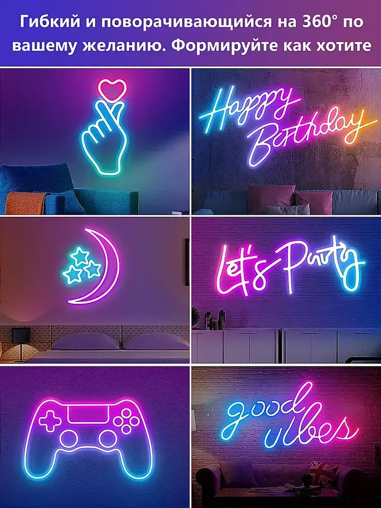 Светодиодная лента 20м, Гибкий разноцветный неон,подсветка для интерьера