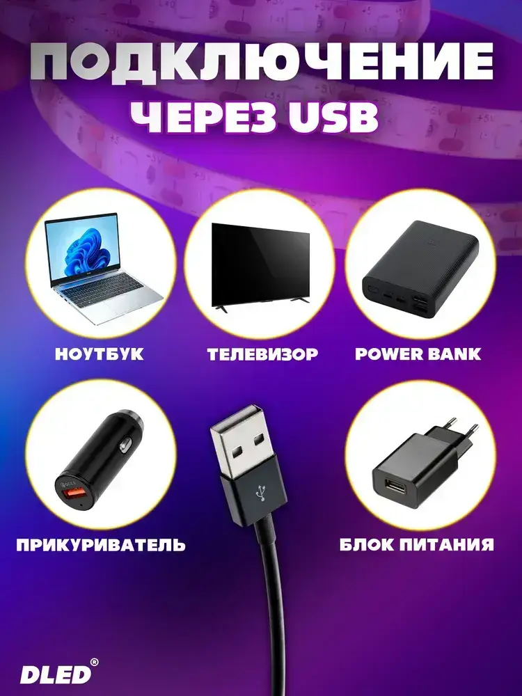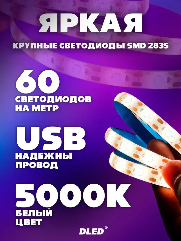 Светодиодная лента 3 метра c USB разъемом SMD 2835 (60 LED/M) 5V DС- цвет белый