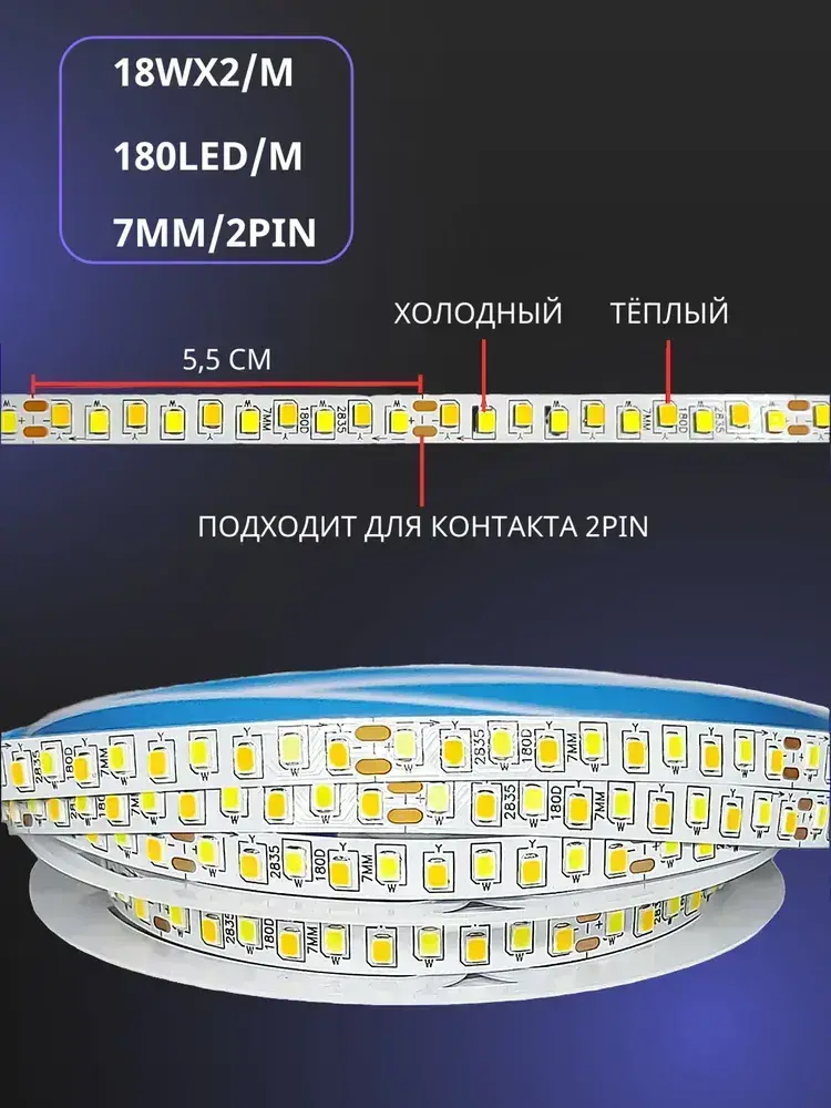 Светодиодная лента для ремонта люстры двух цветная / два контакта 3метра