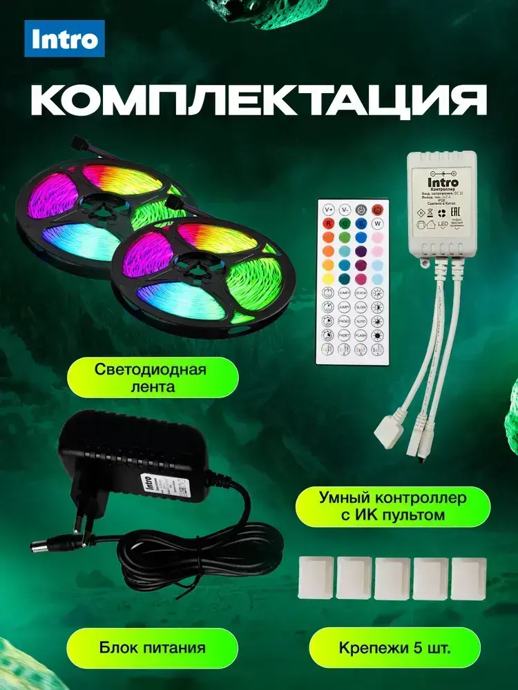 Светодиодная лента RGB 24 В ЭРА 5050Kit умная с пультом и блоком питания, 40 м, 12 Вт