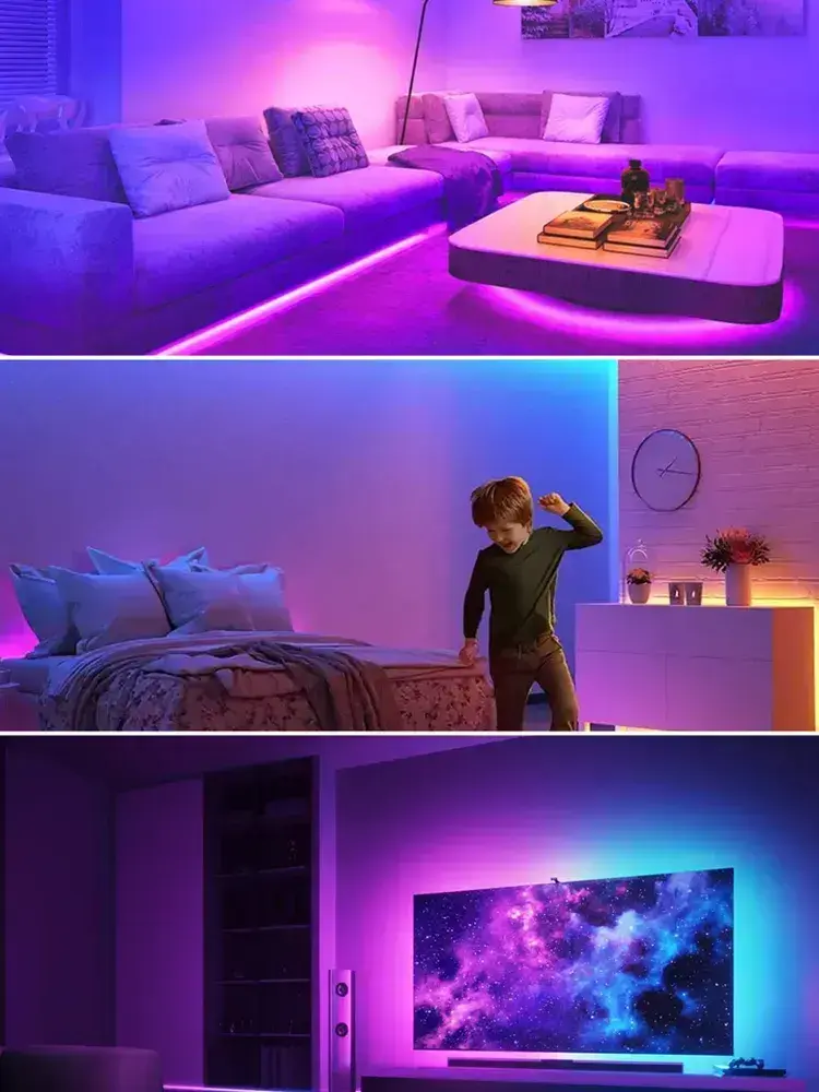 Светодиодная лента RGB 40м, гирлянда, управление с телефона и пульта, многоцветная подсветка для кухни и комнаты