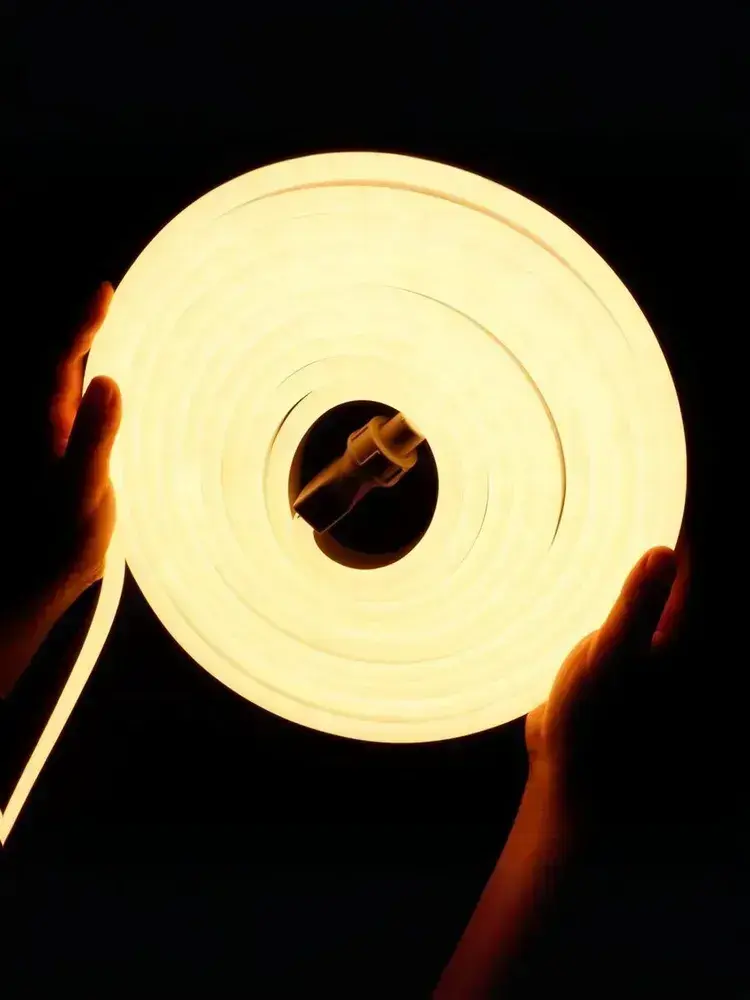 Светодиодная лента теплый белый, 5м, 12В, IP65, 120 LED/m + блок питания 220В, гибкий неон, неоновая подсветка.