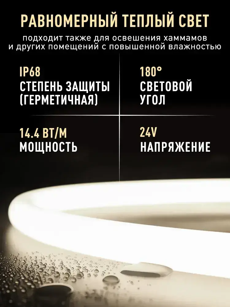 Светодиодная термостойкая лента для сауны 120 LED/м, 14,4 Вт/м, 24 В, влагозащищенная IP68, Белый 4000K, 5 м, с держателем ленты
