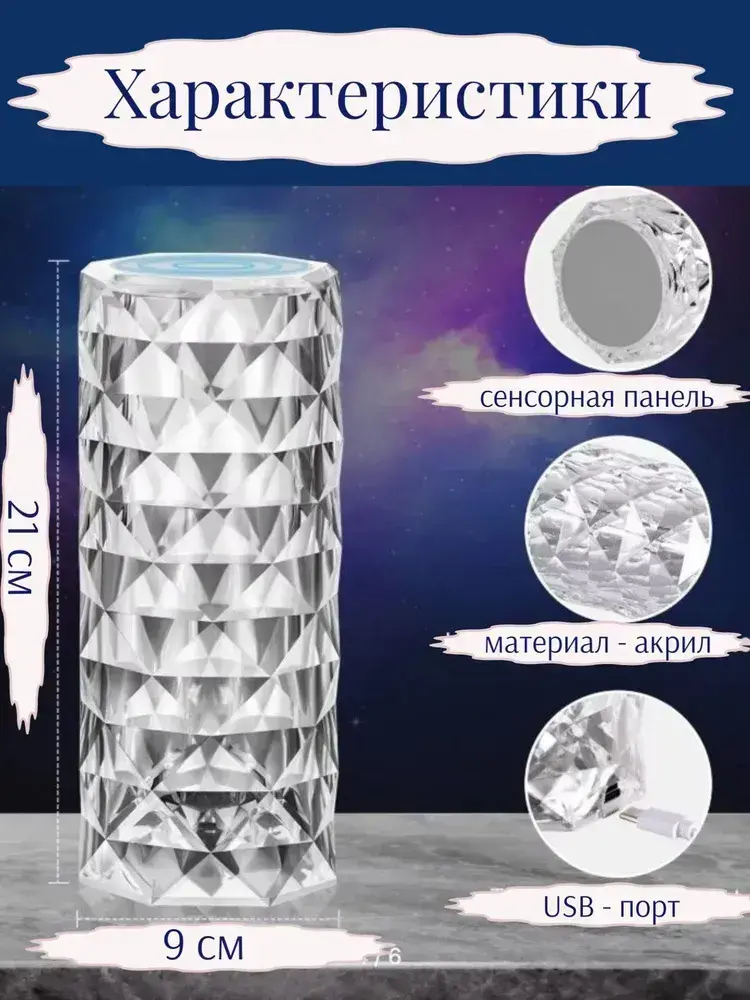 Светодиодный декоративный светильник. Лампа для спальни. Ночник беспроводной